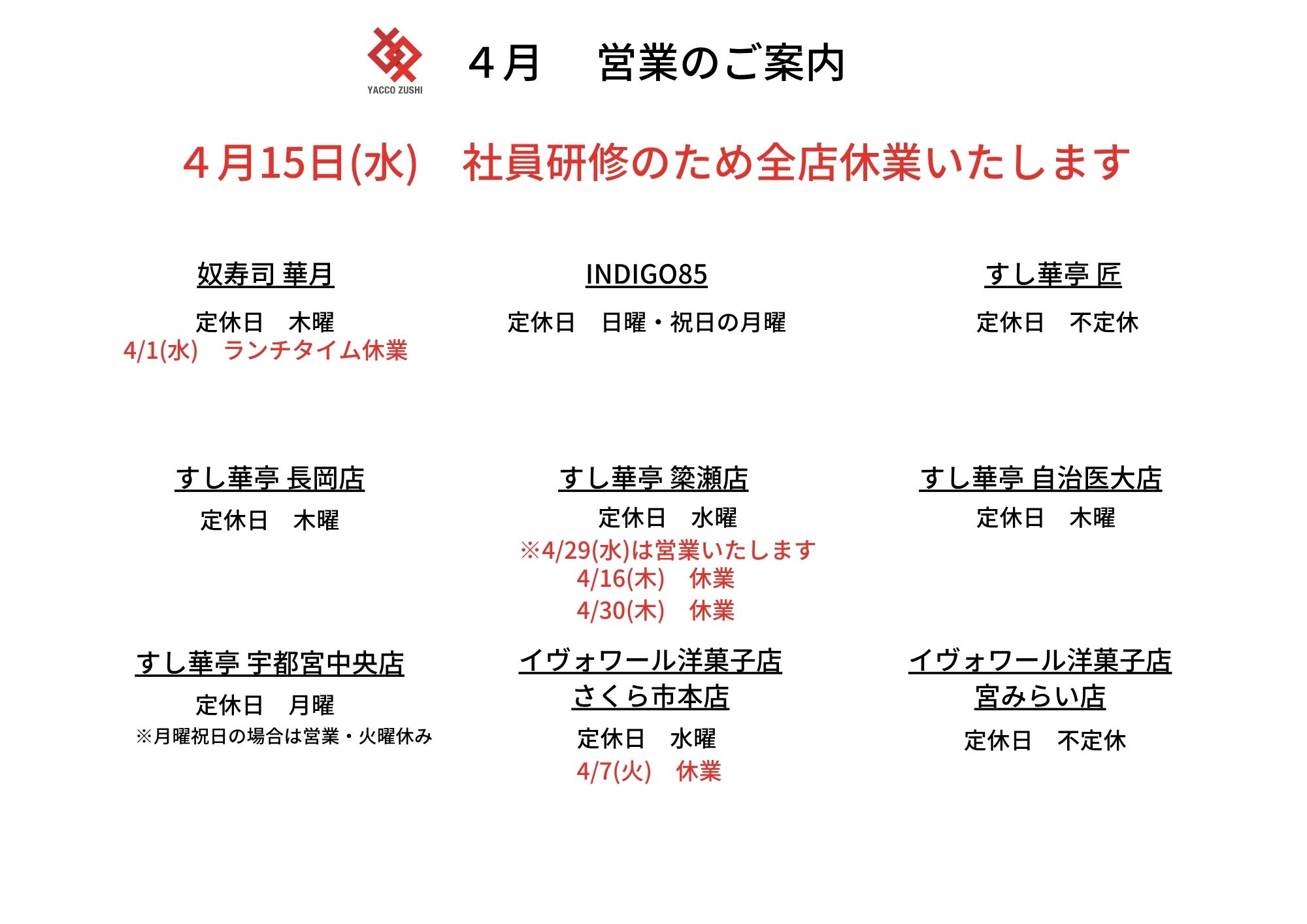 4月 営業予定